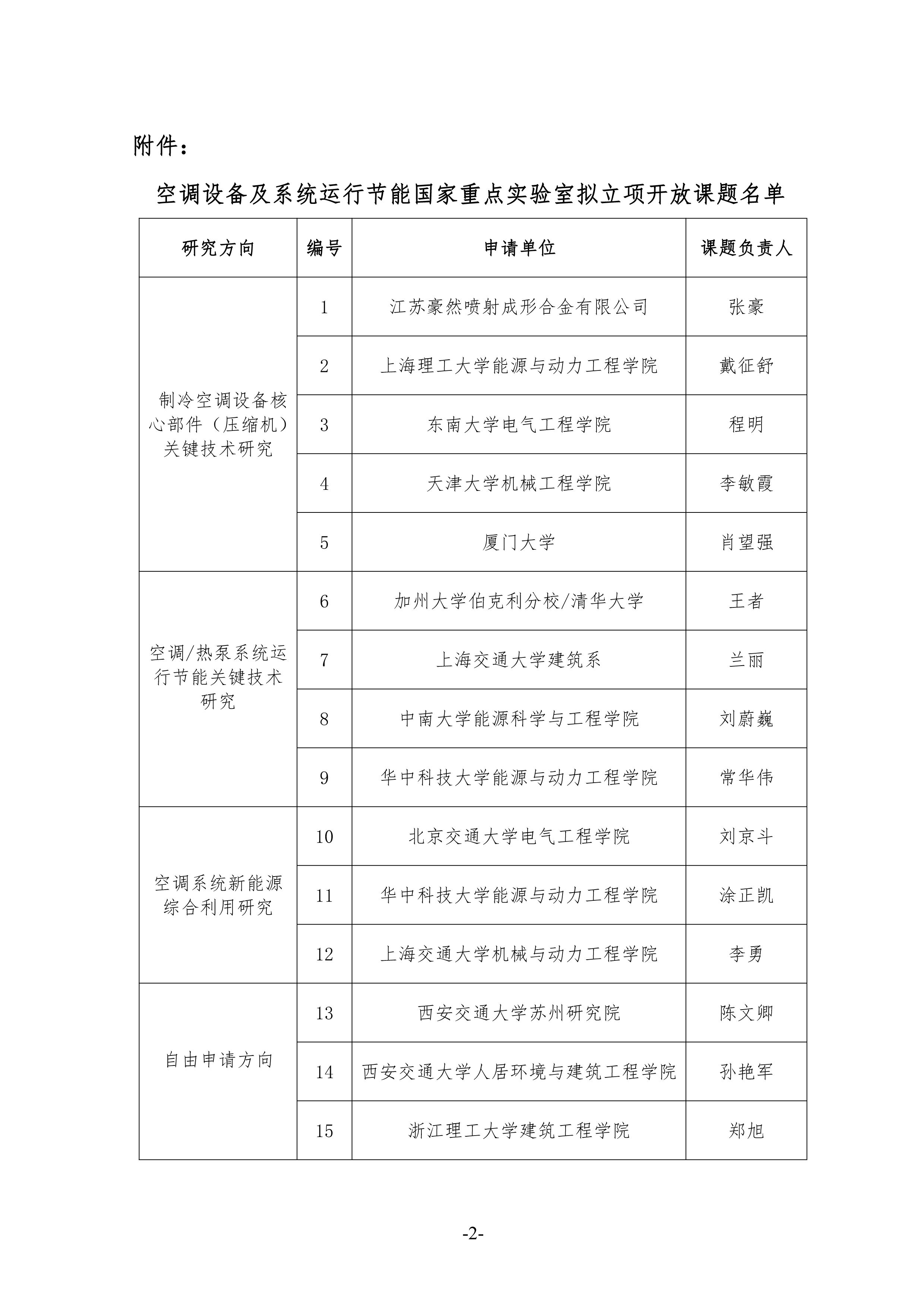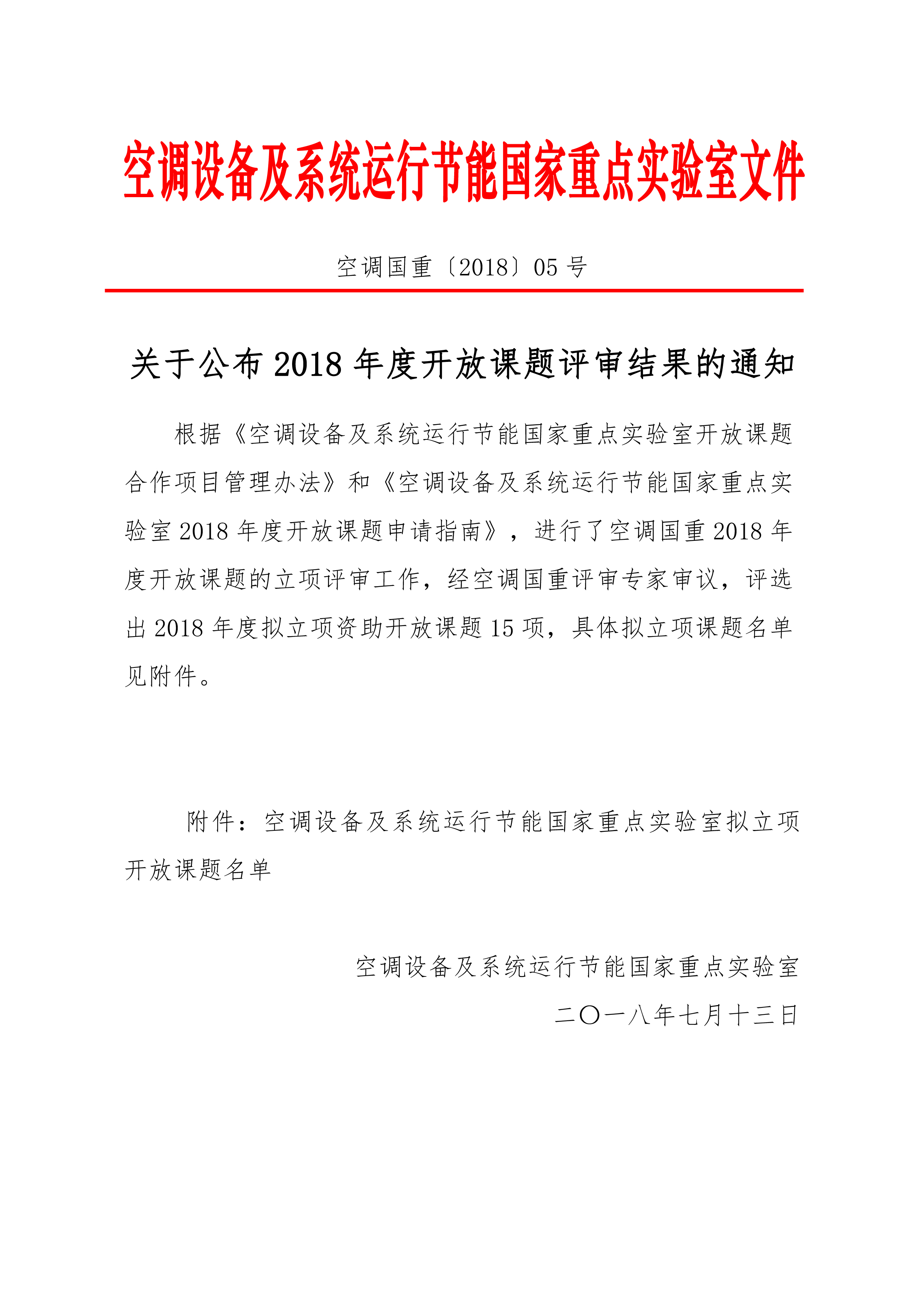 根據(jù)《空調設備及系統(tǒng)運行節(jié)能國家重點實驗室開放課題合作項目管理辦法》和《空調設備及系統(tǒng)運行節(jié)能國家重點實驗室2018年度開放課題申請指南》,進行了空調國重2018年度開放課題的立項評審工作,經(jīng)空調國重評審專家審議,評選出2018年度擬立項資助開放課題15項,具體擬立項課題名單見附件。